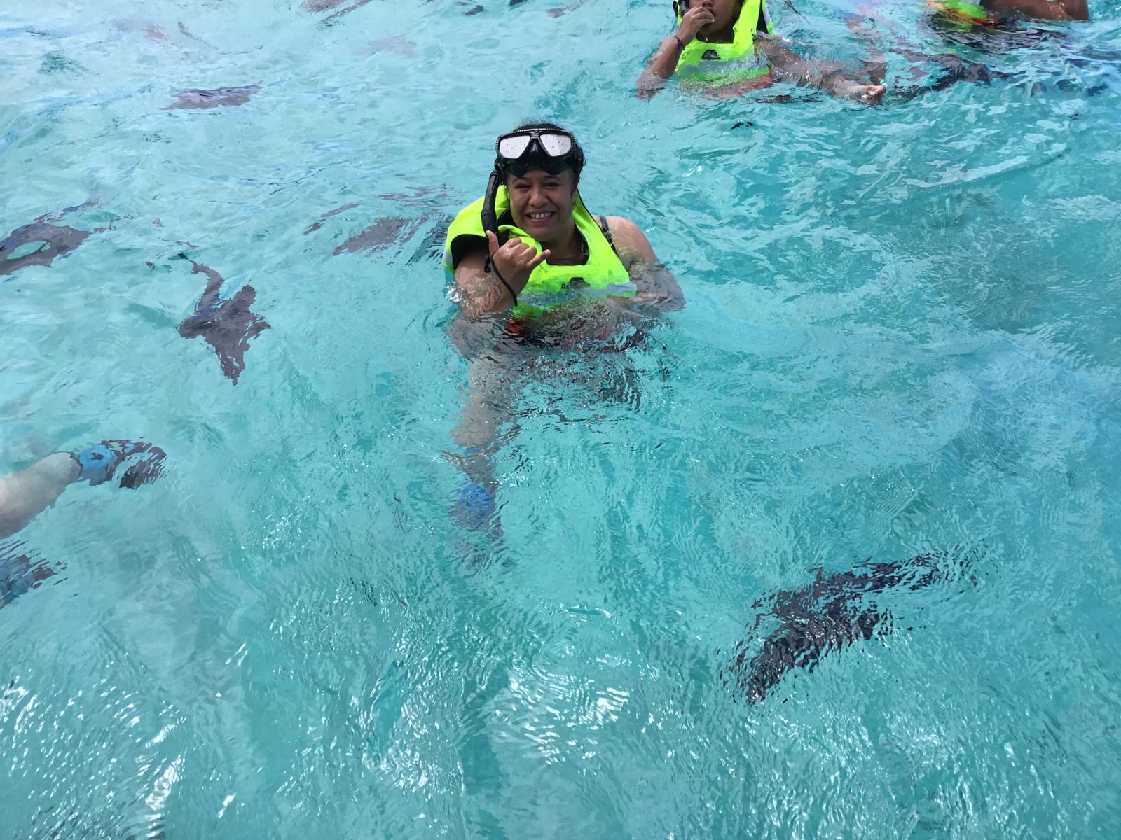 We snorkelled with Captain Tamas (glass bottom boat) and journeyed up Ikurangi Maunga to visit a traditional marae and hear the stories of our vaka.